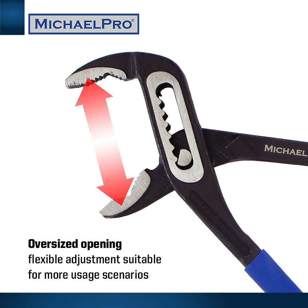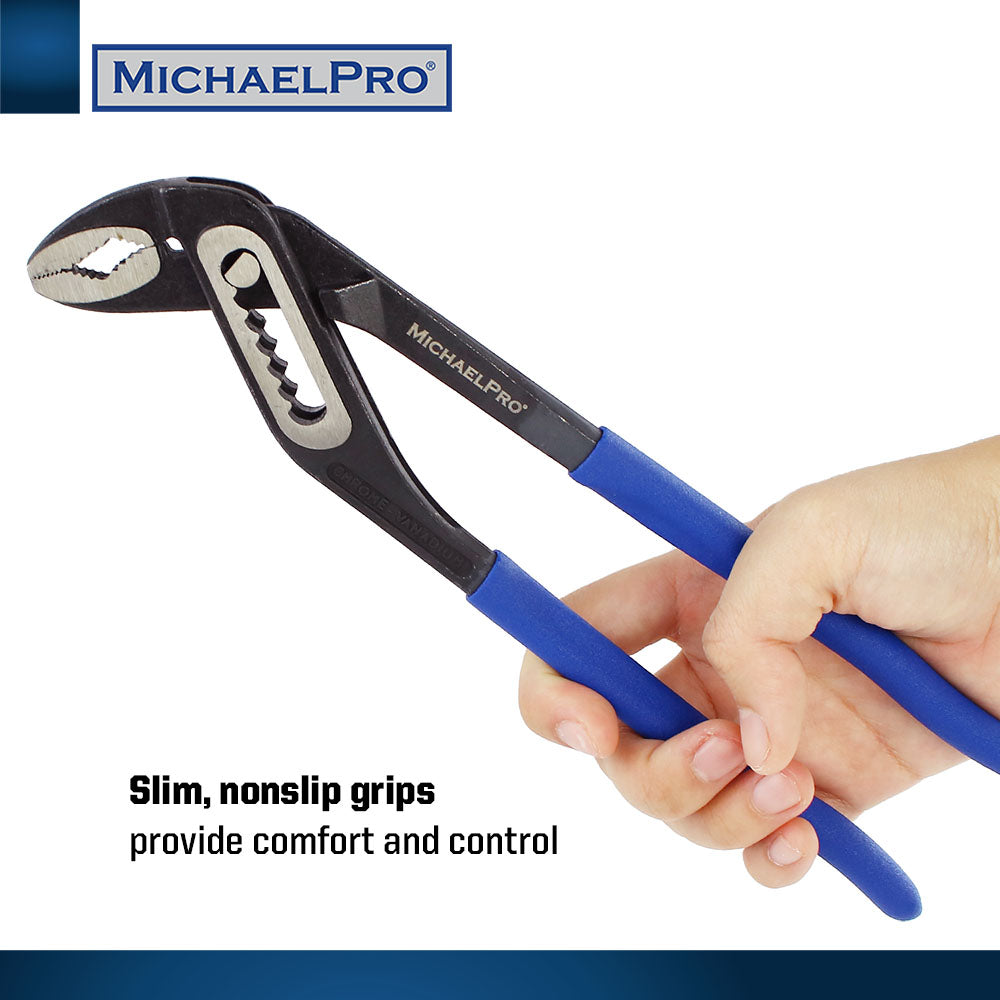 MichaelPro MP003050 is a 10-inch water pump / box joint plier is designed to meet the needs in the shop, at home or in the service field, our box joint pliers are made with drop forged steel for high strength and durability.